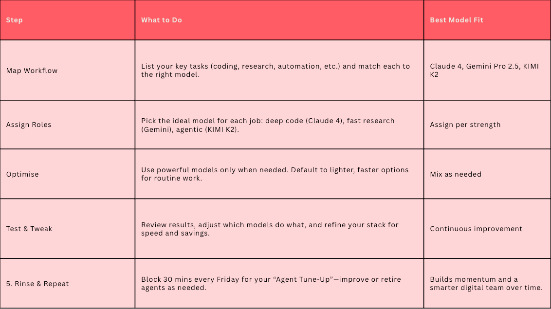 Ready to turn your AI stack into a winning squad? Here’s how the smartest teams are making every model count: