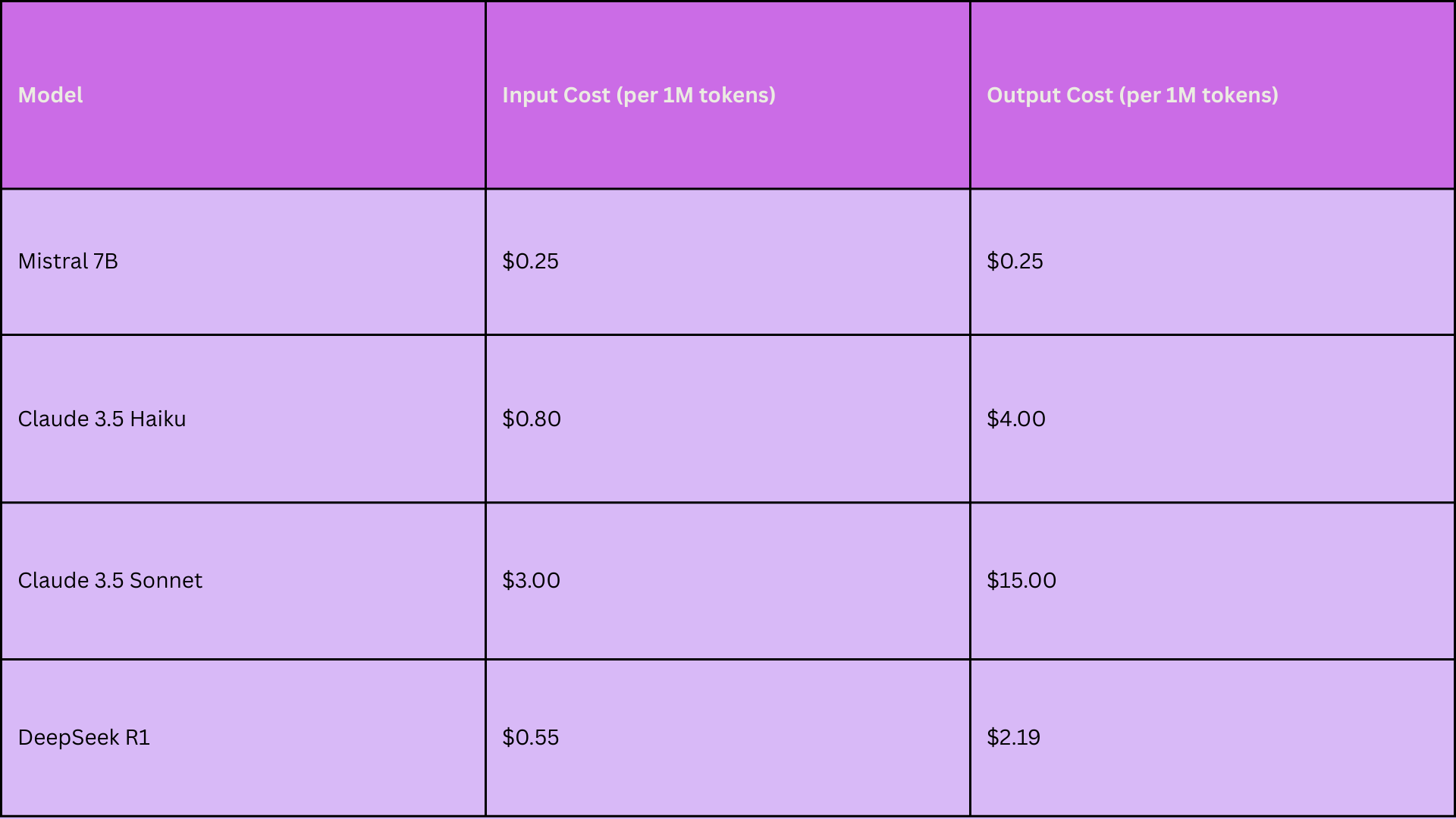 Note: Prices are approximate and may vary based on usage and provider.
